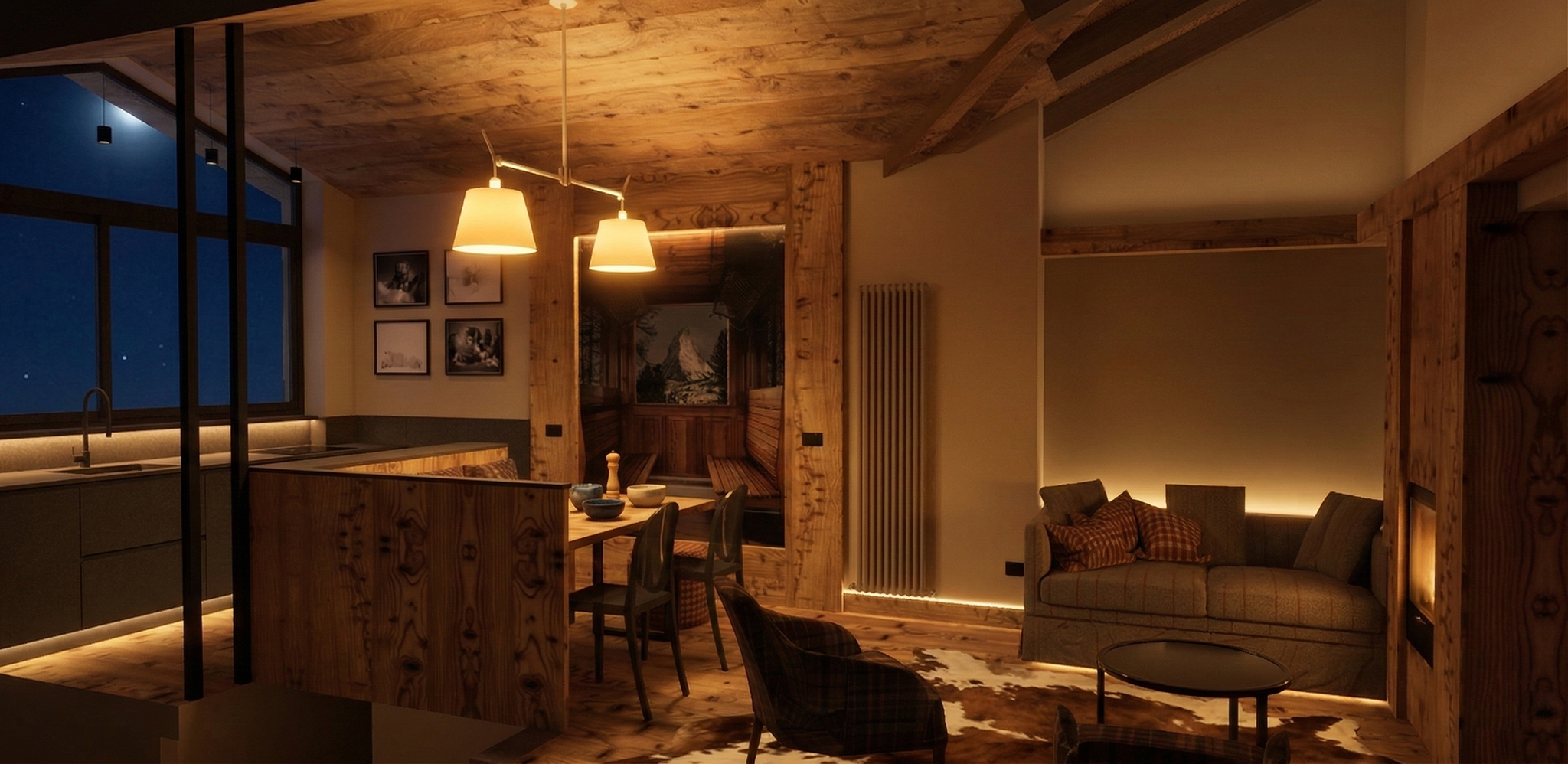 Ristrutturazione con ampliamento volumetrico di un appartamento su tre livelli.