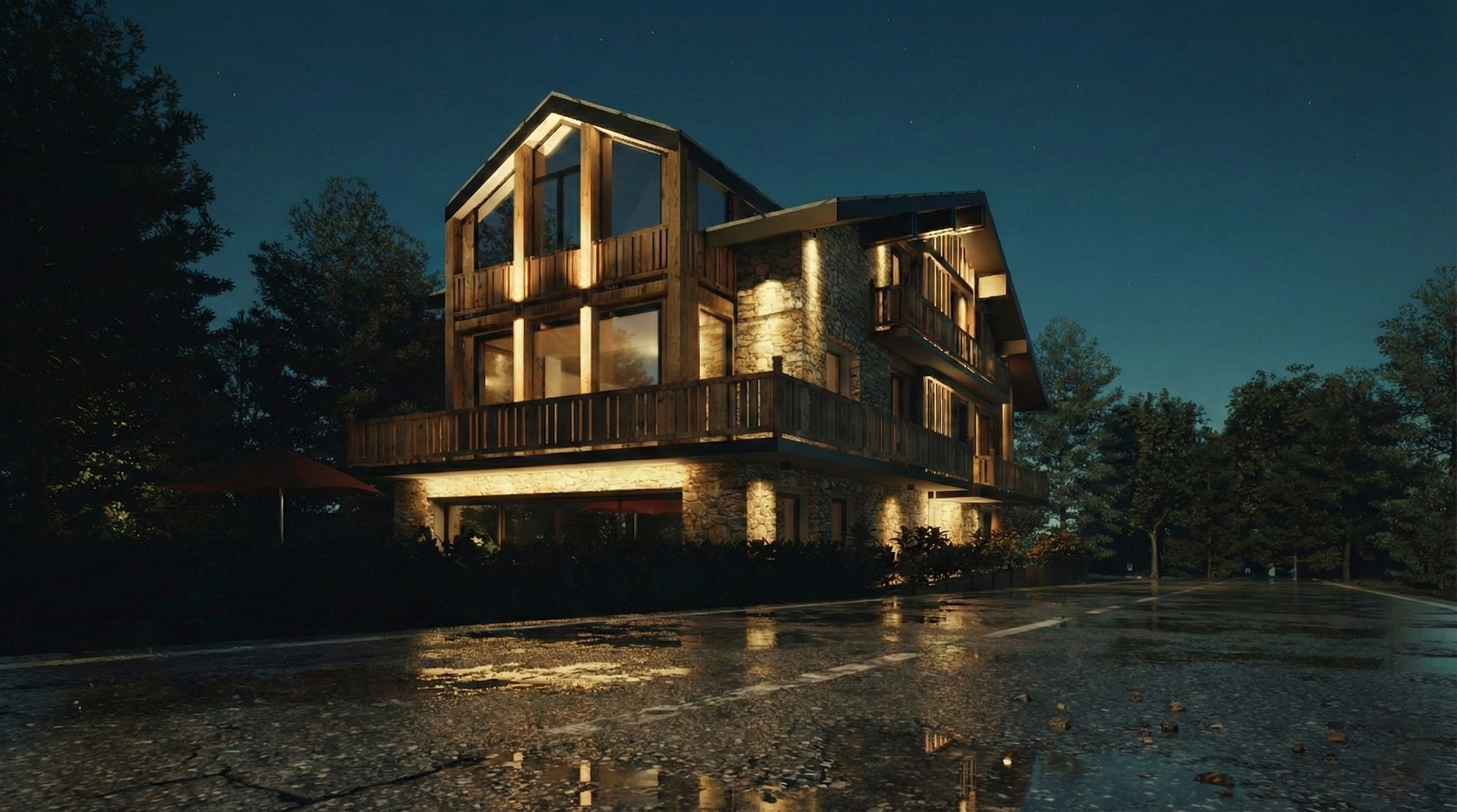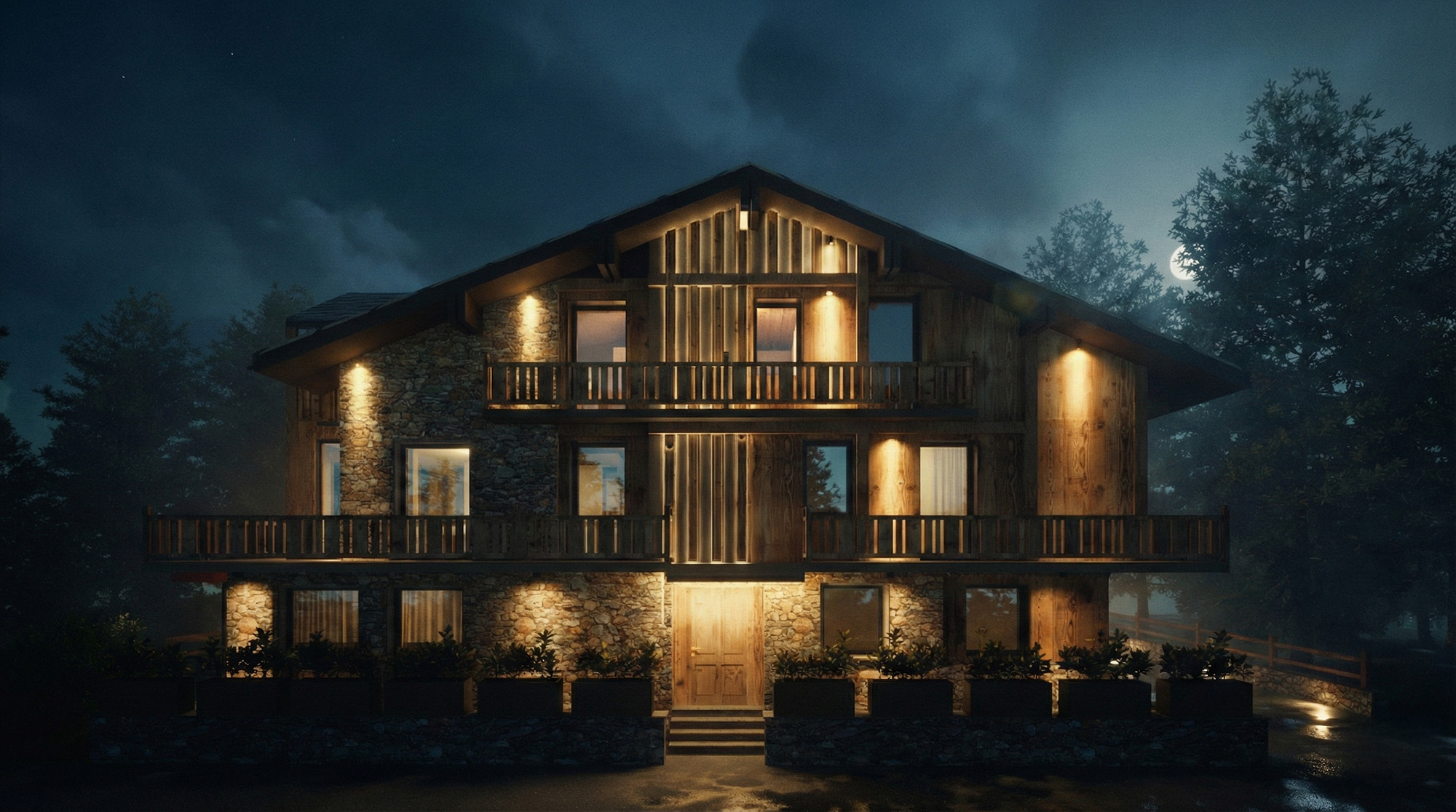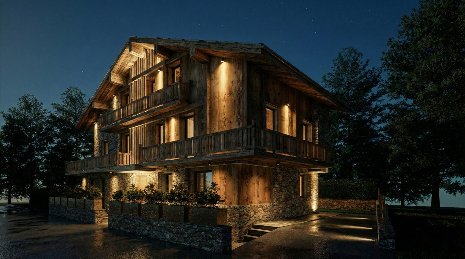 Ristrutturazione di uno chalet anni ’60 a Courmayeur con ampliamento volumetrico e divisione interna di due unità abitative.