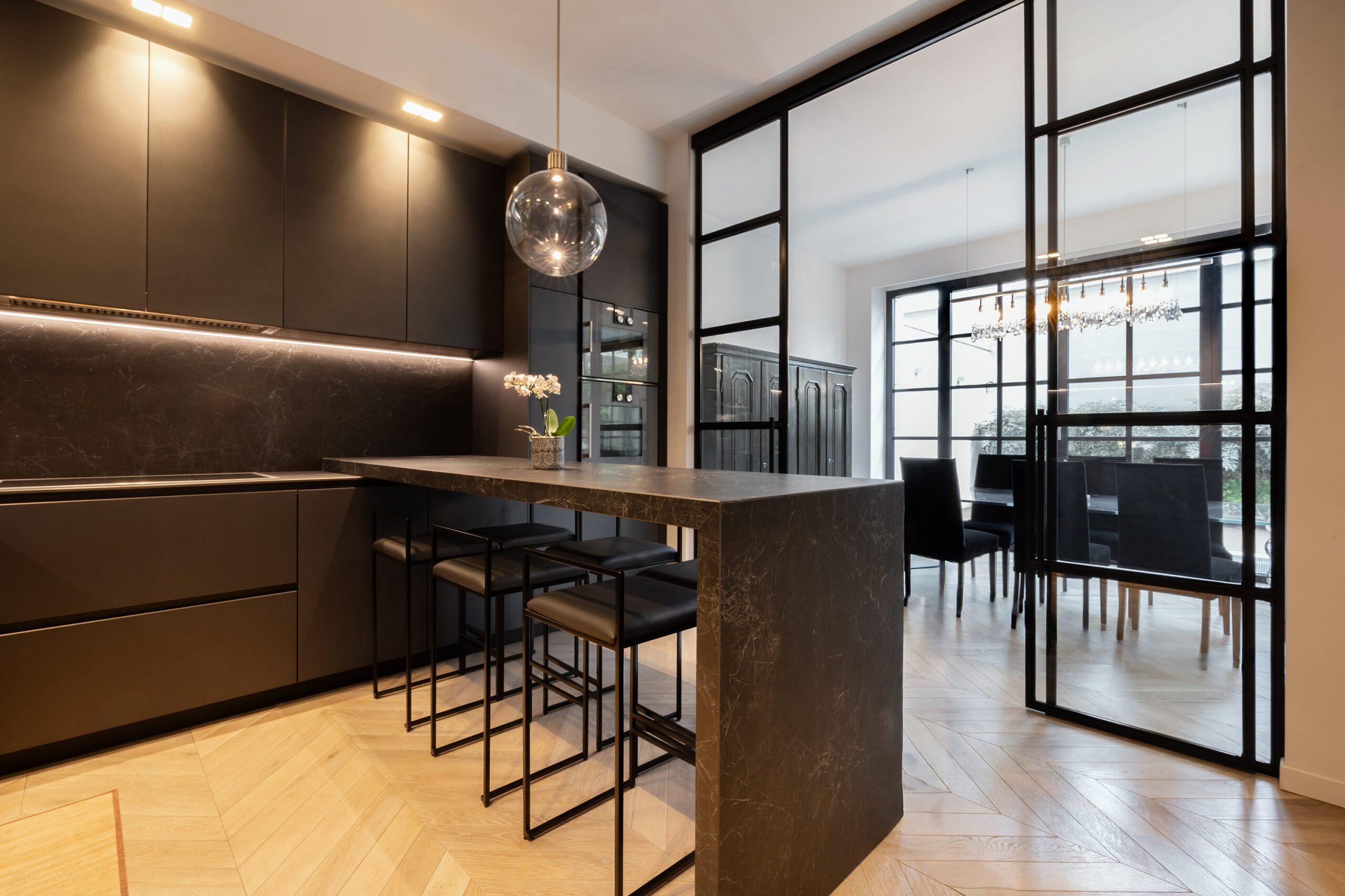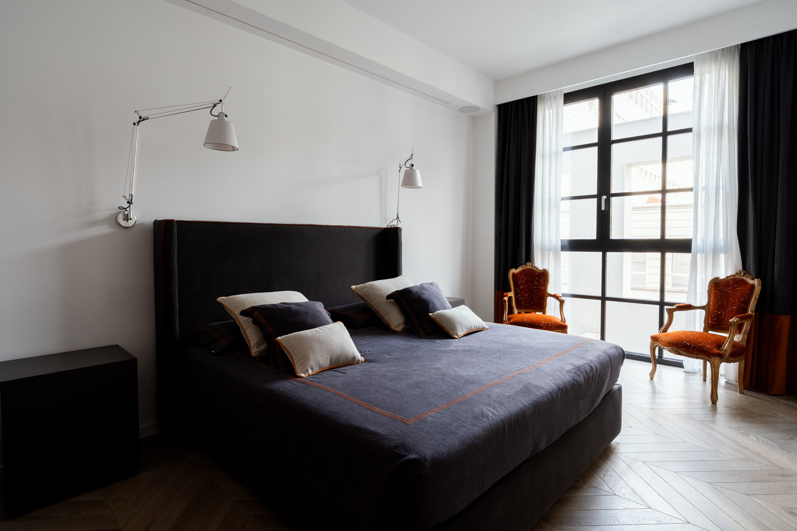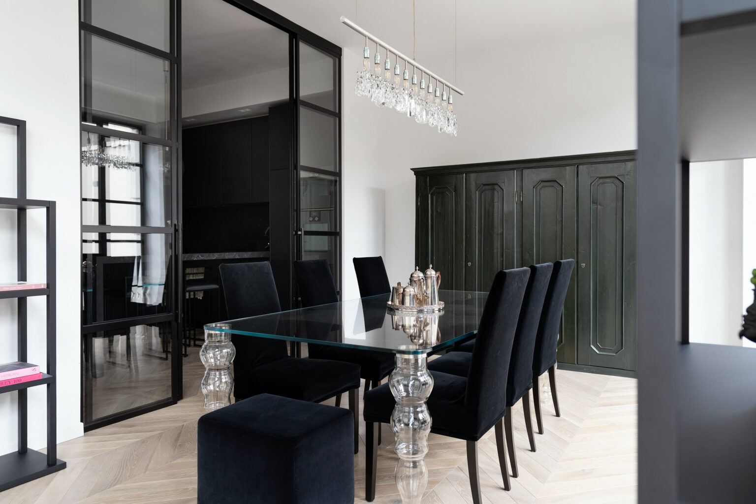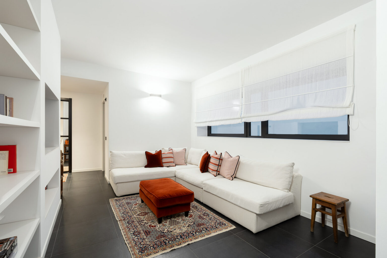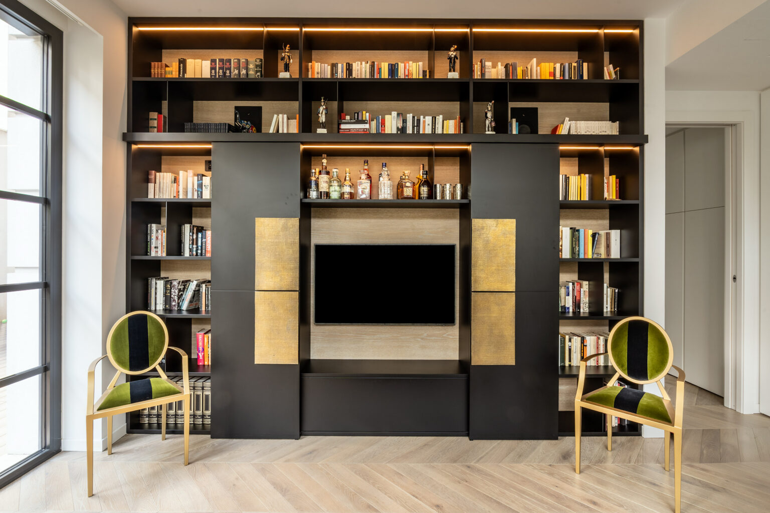 Punto centrale della villa urbana disposta su 3 livelli è l’ampia zona living con una doppia altezza di 6 metri. Ferro, legno e il verde giardino privato sono i tre elementi attorno cui ruota tutto il moodboard del progetto. Tutti gli arredi sono stati progettati su misura.